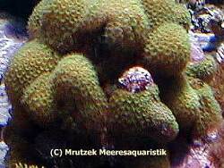 Description: Colonies are encrusting. Corallites are widely separated and circular in outline. They have six exsert septa which are fused with the columella. A second cycle of septa is rudimentary. The coenosteum has fine blisters.