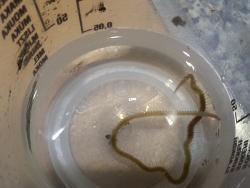 This 10 cm long worm stuck in the substrate of a soft coral. This worm has a cylindrical body.